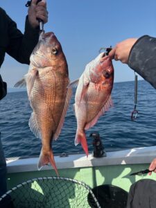 中々、日本海がシケで出港できませんが、出れば釣れます‼️😊本日は、鯛ラバで良型マダイが短時間で釣れました‼️😊丸々して脂がのっています😊遊漁船予約、お待ちしてます😊